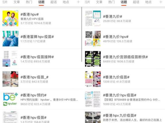 在微博上,关键词为“香港HPV”的话题词,超过了80个,许多话题的阅读数都超过了百万。