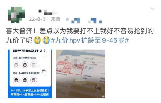 这也让很多26岁以上的女性,忍不住欢呼着“自己终于能打上九价了”。