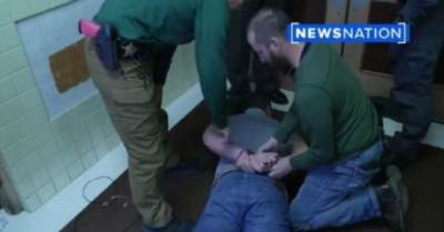 在新闻发布会上,美国全国新闻台记者埃文·兰伯特在现场进行直播报道时,美国国民警卫队和警察当场将其“抓捕”并戴上手铐,还要起诉他。