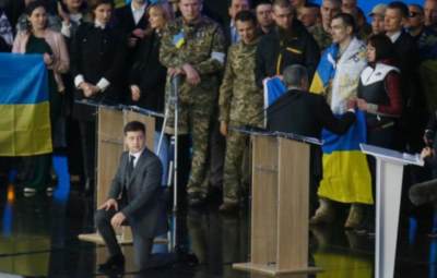 2019年4月,泽连斯基为了总统之位,与其最大的竞争对手波罗申科在奥林匹克体育场公开辩论。当时,现场共有2万多名观众。波罗申科同样是个老牌政治家,泽连斯基在面对他时,丝毫不犯怵。