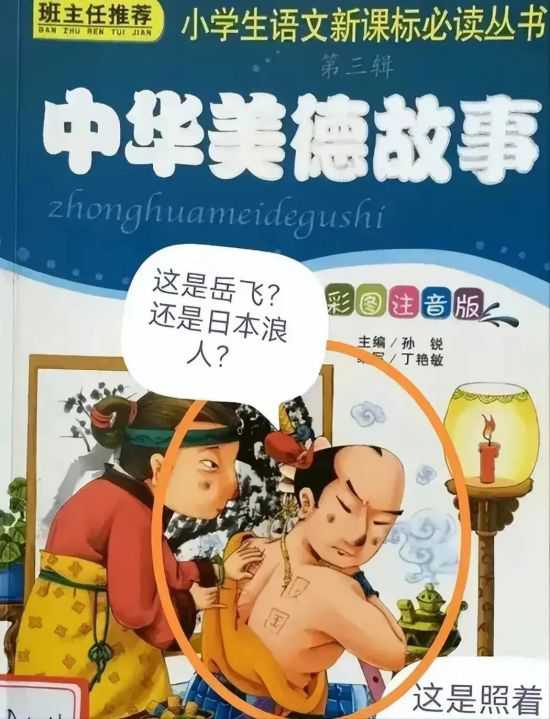 岳母刺字精忠报国的故事家喻户晓,也是熏陶爱国主义的经典故事。但他们却把岳飞画成了一个秃头倭身的日本浪人形象,这尽的是谁的忠,又报的谁的国?