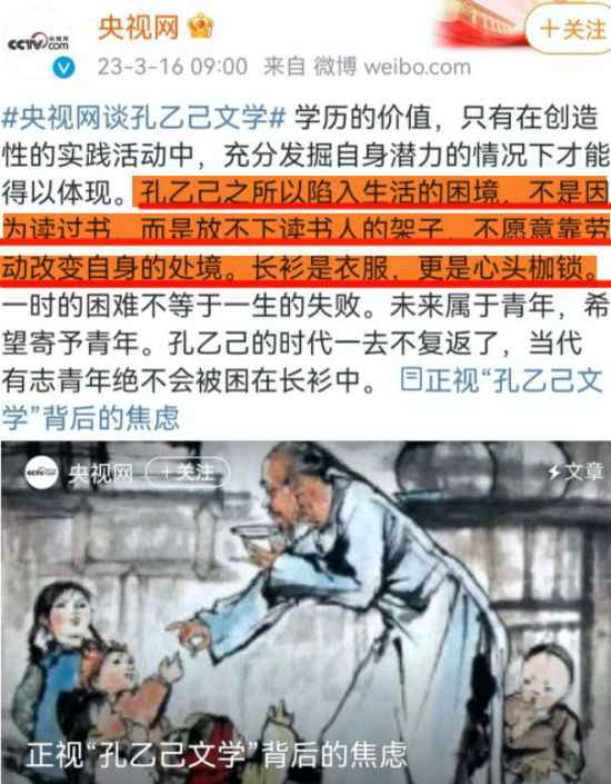 央视谈孔乙己,独特的视角吸引了不少关注,他们说: