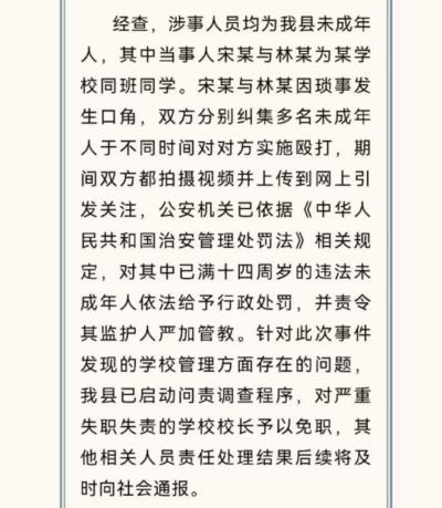 “对严重失职失责的学校校长予以面子,其他相关人员责任处理结果后续将及时向社会通报。”