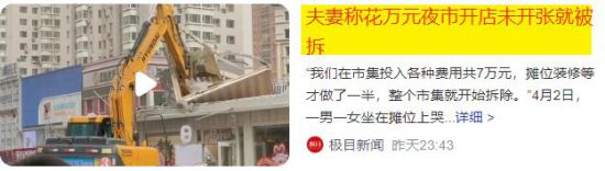 这是昨天的新闻,一对夫妻信了鬼话,花万元到夜市开店,还没有开张就被拆了。不知道为什么吧?其实新闻里写得很清楚,主办方和官方发生了纠纷矛盾,商户买单,有兴趣的可以自己去网上搜了看看,长长见识。