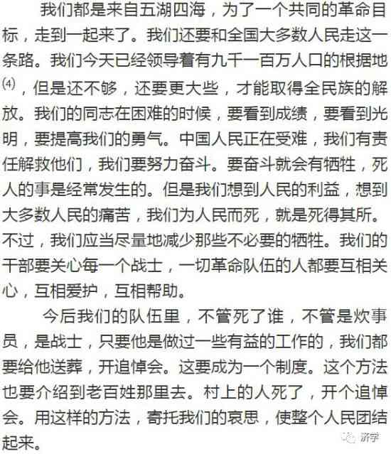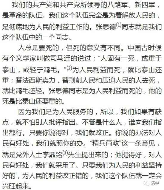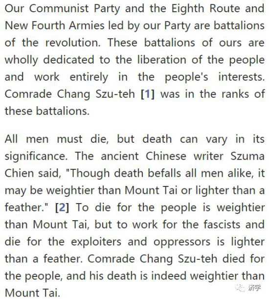 这是毛泽东同志在中共中央直属机关为追悼张思德同志而召集的会议上所作的讲演。