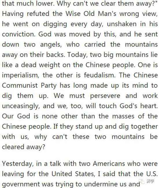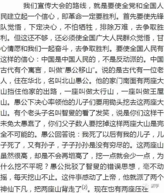 如果说《为人民服务》和《纪念白求恩》重点在讲世界观的话,那《愚公移山》则重点在讲世界观指导下的方法论。