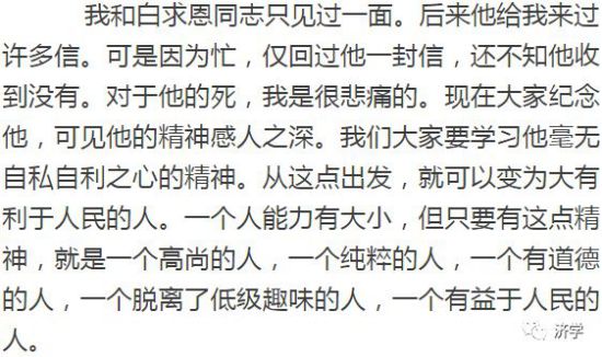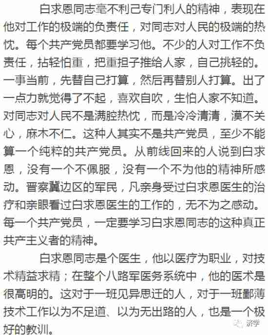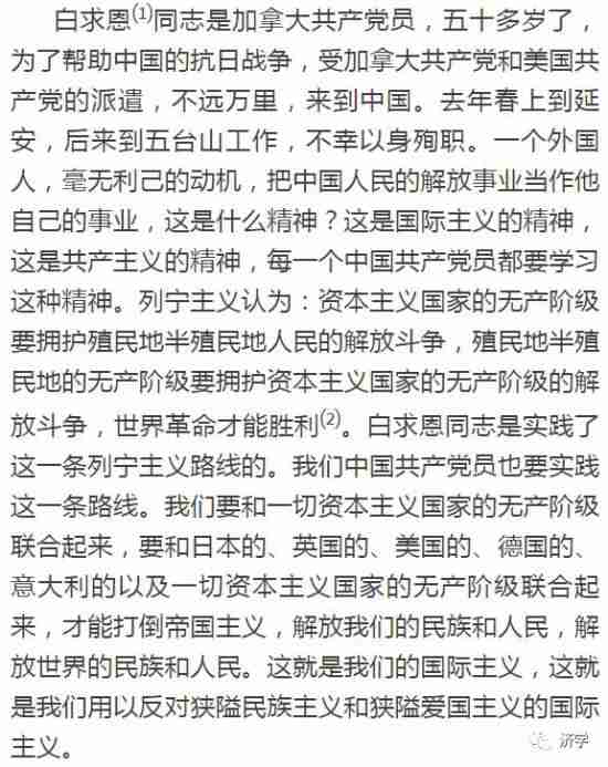 《纪念白求恩》,给我们展示了一位外国共产党员的光辉形象,把国际主义精神,结合爱国主义情怀,在共产主义这个大背景下,说得清清楚楚,明明白白。