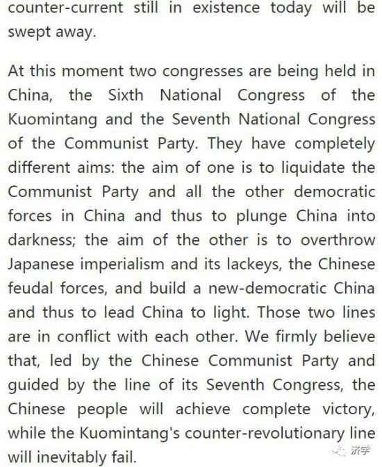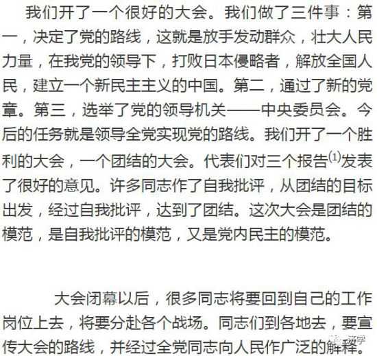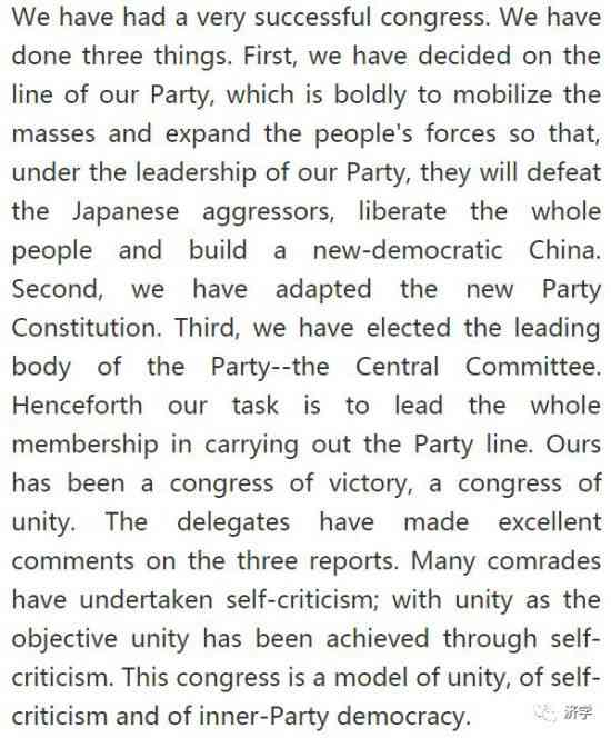 这是毛泽东同志在中国共产党第七次全国代表大会上的闭幕词。