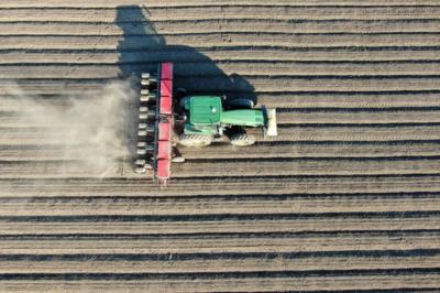 2022年5月8日,黑龙江鹤山农场工人驾驶一台大马力拖拉机播种大豆。图|图虫创意