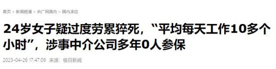这让我想到今天的另一个新闻,说一名24岁的女子,家里有两个孩子,不幸的是由于加班,她在电子厂里猝死了。24岁,1999年出生,她还相当年轻啊……