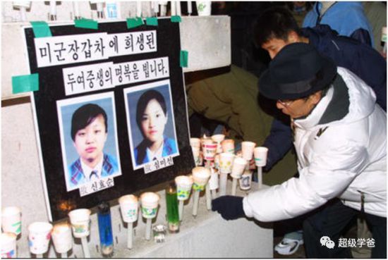 比如2002年6月13日,两位十几岁的女中学生,被驻韩美军装甲车反复碾压死亡。这导致韩国上下群情激奋,抗议声此起彼伏。