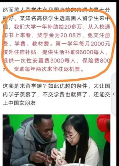 想想我等平民百姓穷尽一生起早贪黑,连旅游一国也只能是奢望,却看到高校给非洲留学生的奖学金和补助补贴竟能幸福旅游17国,国人们的内心又怎能平静。