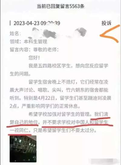 我们的孩子向老师投诉留学生深夜扰民,还得小心翼翼地说"我们清楚自己的地位",这足以说明,在这所高校里,向来都是留学生高人一等,我们自己的孩子低人一等。