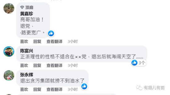 在郭正亮的退党声明推特下有大批台湾网友力挺郭正亮退D。