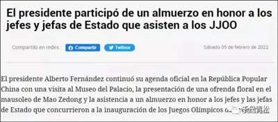 就如2022年的时候,阿根廷总统府官方网站2月5日发布,来华出席北京冬奥会开幕式及相关活动的阿根廷总统费尔南德斯参观瞻仰了毛主席纪念堂,并敬献花圈。