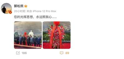 知名影评人郭松民在微博发了两张图片、和一句话:“您的光辉思想,永远照我心……”