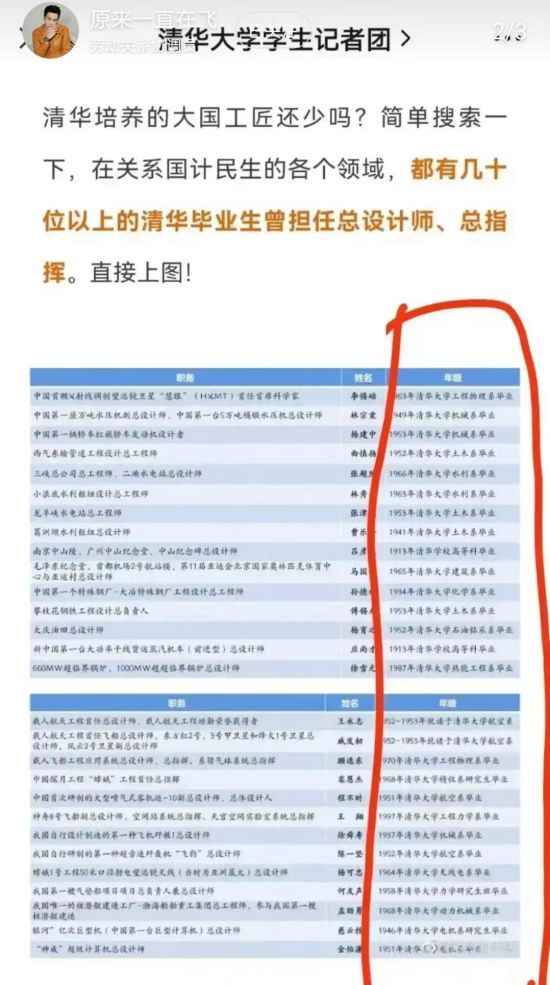 因为国人对寄予厚望的清北没能为祖国培养出大国工匠大失所望,清华怕坐冷板凳,便硬生生在网上晒出一张清华大国工匠名单来。