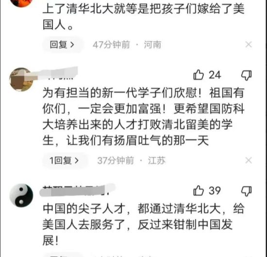 也正是近年来从清北走出去的叛徒们效忠美国卡中国脖子,使祖国深受其害,让受过爱国主义教育的高考状元和高分学霸幡然醒悟,这才对清北不屑一顾,而转向保家卫国、为国争光的军委和国防部属高校。