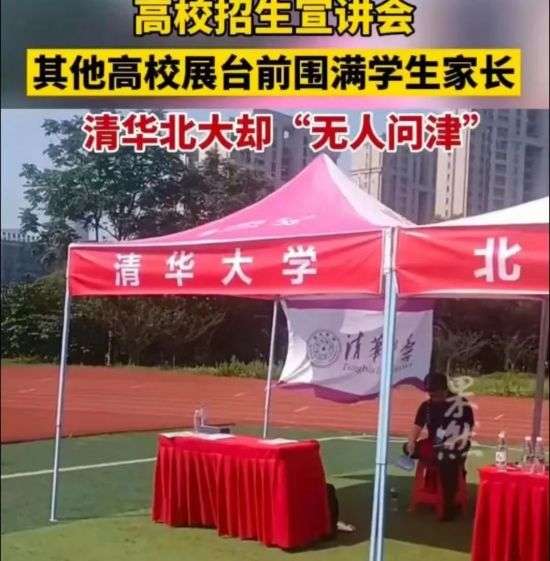 6月26日,在湖北宜昌举办的一场高校招生宣讲会上,到场的各大高校展位前都围满了咨询的考生和家长,而且来来往往、络绎不绝,唯独清华大学和北京大学的展位始终无人问津、空空如也。