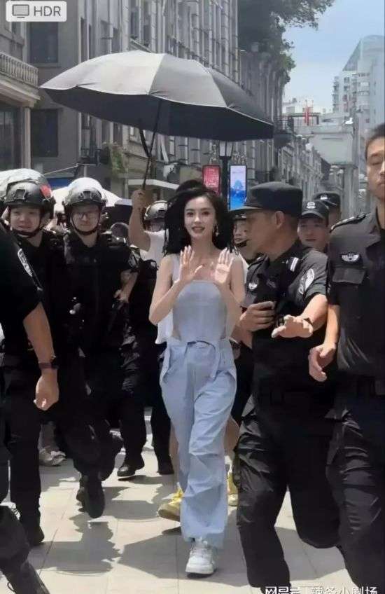 这几十名全副武装的特警,是来为女戏子保驾护航的——手拉手把女戏子护在中央,并为其开道。