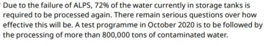 这里针对之前被洗地者们吹上天的ALPS过滤系统说几句,第一,日本方面之前买了一些ALPS的英文通稿;第二,这套系统面对大量污水,处理一遍是不够的,第二遍的处理是否合理进行,值得怀疑。