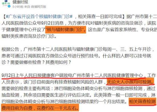 今天又看到新闻,说某地医院开设“核辐射检测门诊”,单人收费的价位目前在1000元左右。