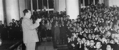1957年,毛泽东在莫斯科大学对留苏学生演讲