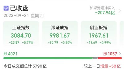 红星资本局9月21日消息,A股三大股指全天持续走低,沪指失守3100点,深成指跌破10000点,刷新2020年4月以来新低。