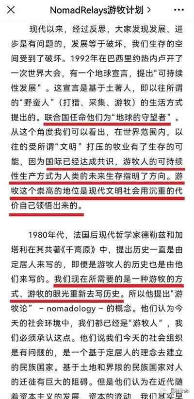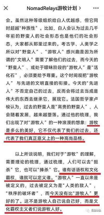 “……今天没有比"游牧人"更好的了。这不是游牧人自己说自己好,而是文化霸权主义者们说游牧人好。”