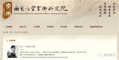笔者在南京大学学衡研究院找到了讲座教授乌·额·宝力格的名字。