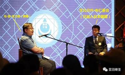 以下这张照片来自于一个名叫“游牧计划”的活动现场,主角一个是美国人乌·额·宝力格 (Uradyn E. Bulag),另一个是日本人孛儿只斤·布仁赛音,但是二者都有一个共同的特点:都是亚裔面孔,都是蒙古族。