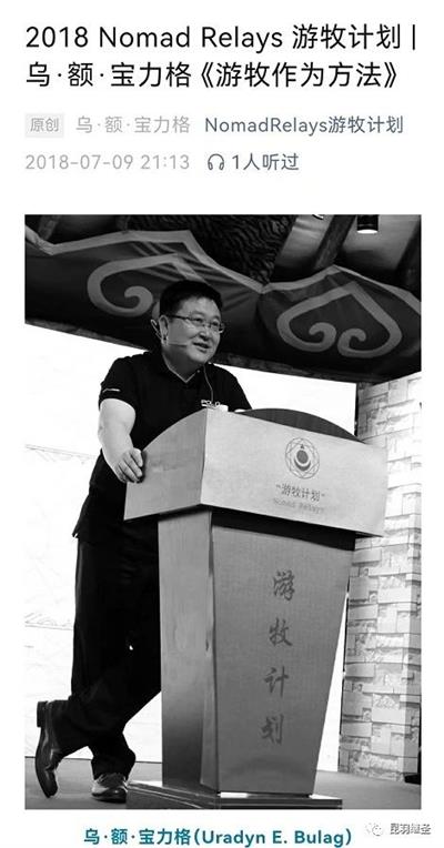 2018年7月,乌·额·宝力格作了《游牧作为方法》的演讲。