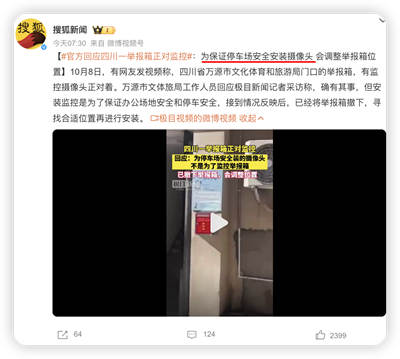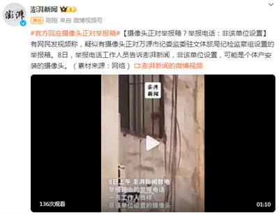视频传播之后,当地回应解释,摄像头不是为了针对举报箱,而是保证附近停车场的安全。