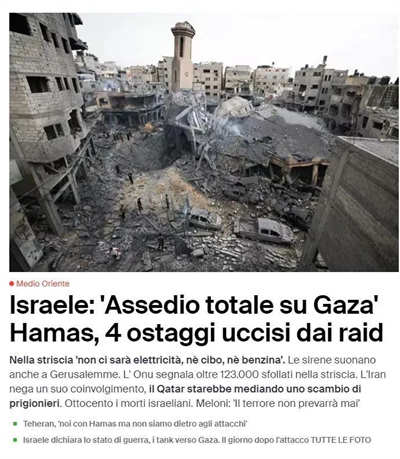 10月9日,以色列《国土报》报道:以色列国防部将对巴勒斯坦加沙地带实行“全面封锁”。在全面封锁下,加沙地带将“无电力、无食物、无燃料”。加沙地区只有365平方公里,却有250余万巴勒斯坦人。