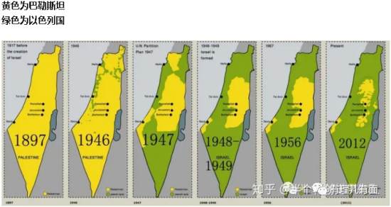 通过前后五次中东战争,在美国的军事直接援助下,以色列不但占领了原属巴勒斯坦的国土,而且军事能力在中东首屈一指,世界各国正式承认以色列作为独立国家的存在。