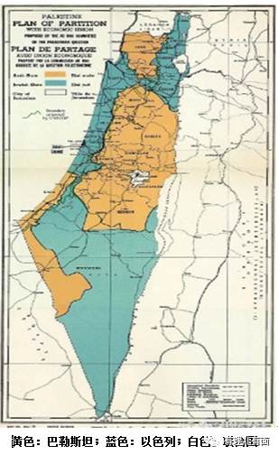 1947年11月29日,联合国做出第181号决议(即分治决议)。主要内容为:在总面积2.7万平方公里的巴勒斯坦土地上分别建立巴勒斯坦、以色列两个国家。其中巴方国土1.1万平方公里,占总面积的43%;以方国土面积1.4万平方公里,占总面积的57%;耶路撒冷成立国际特别政权,由联合国管理。
