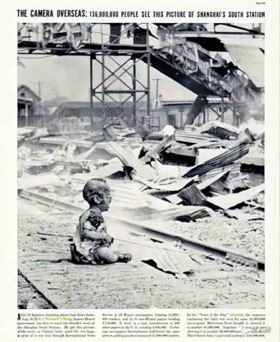1937年10月4日发行的美国《生活》(LIFE)周刊第102页,刊登了一张照片——《中国娃娃》(Shanghai Baby),又名《日机轰炸下上海南站的儿童》。
