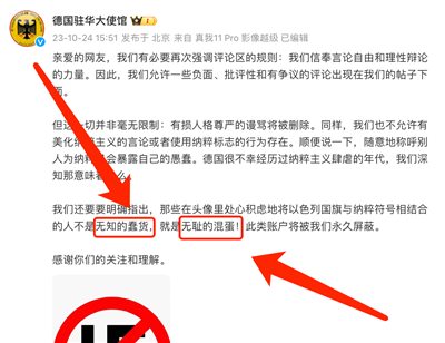 10月24日,德国驻华大使馆的官微,发了一条非常失态的帖子,把一些中国网友称为“无知的蠢货”和“无耻的混蛋”。