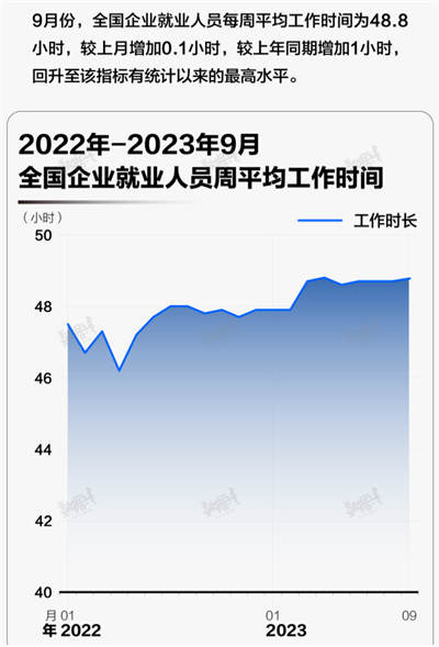 相比而言,国内的统计局在统计本国数据的时候,考虑到美化本国劳动者生存状况,则通常采取相反的做法。即便如此,本月中旬统计局发布的数据显示:“9月全国企业就业人员每周平均工作48.8小时,重回历史最高点”。