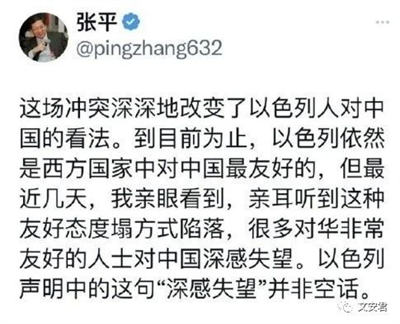3、张平教授,在近期巴以冲突开始的前期,