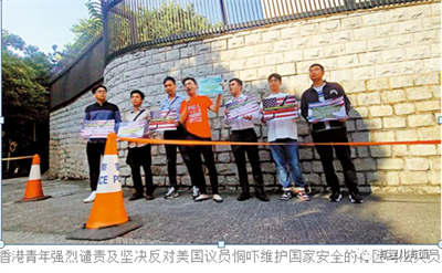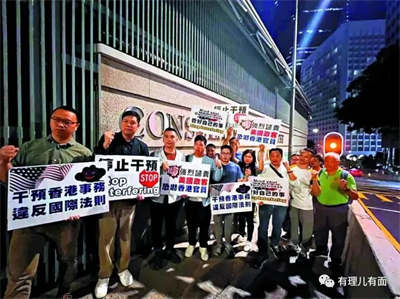 4日,香港岛各界联合会社会关爱事务委员会代表,到美国驻港总领事馆抗议。
