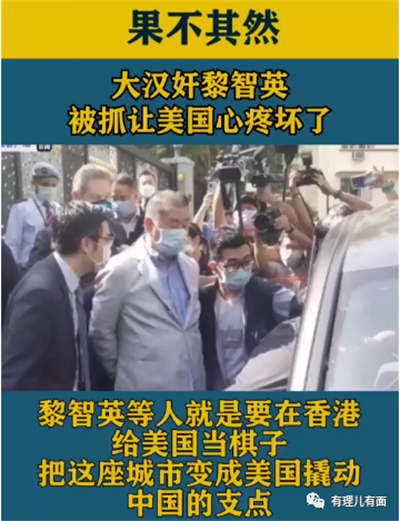 美国政客为乱港头目黎智英等站台,企图通过施压为其洗刷罪行。
