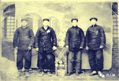 刘少奇(左二)在六河沟煤矿与工友合影,1925、1930年,曾两次来指导组织该矿的工人斗争