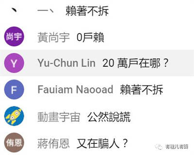 赖清德在辩论会上还污蔑大陆对台湾所造成的“生存威胁”是最大的,台湾民众要团结一致面对来自大陆的“威胁”;抹黑两岸服贸协议会影响百工百业,也会造成台湾社会的不安,等等。而评论区出现最多的字眼就是“赖着不拆”。