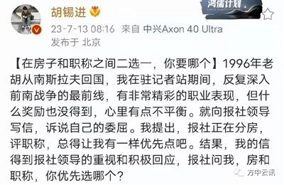 对于女儿的工作分配的问题,貌似有着很高政治觉悟的胡锡进很大度的并没有避嫌。