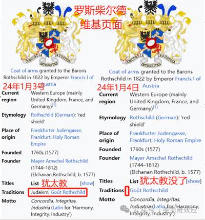 最近有一件有趣的事情。犹太资本的祖师爷,犹太银行业的典型代表,一直以来以犹太贵族自居的罗斯柴尔德的维基页面,开始去犹太化。