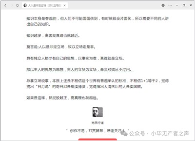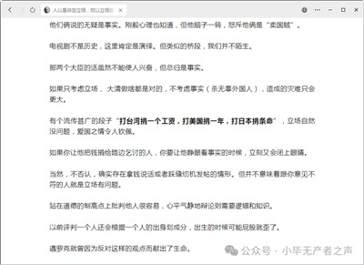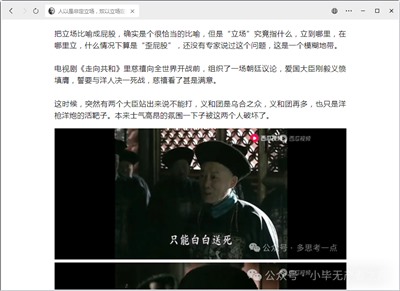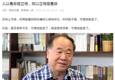 如果有人要为他辩驳,说:“人家就是不设立场,小毕你别冤枉人家”,那就请您看看他暗戳戳的维护胡适的态度吧,他要洗白莫言,却把莫言的话当成了真理作为论据,这岂不是妄造因果吗?如果仔细研读他的文章,就能感受到他隐晦的立场,他若是不设立场,为什么单单批判无产阶级对胡适,莫言等人的立场,而不批判一些资产阶级的错误立场呢?