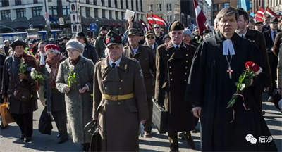 2017年,乌克兰“班德拉分子”到拉脱维亚首都里加,以纪念二战老兵为由,为当年与纳粹德军合作的波罗的海“志愿兵团”翻案,公然穿上纳粹式军服游行。