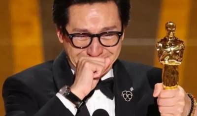 关继威在奥斯卡典礼失声痛哭:“人们说,这样的故事只会发生在电影里,想不到发生在了我身上了,这就是美国梦!”