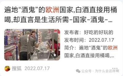 至于喝酒, 大多数的中国人,在喝酒的过程中,讲究一个度,而且都会在内心划一个界线,喝到多少就绝不可再喝,否则会失态,会丢人,而西方人的“文化”观念中,绝不会有“失态”“丢人”的”境界“。甚至是相反,越失态越表明自己有“自由人权”,越“丢人”越表明自己的“个性独立”,而可恼的是,现在这些西方的糟粕观念,正在被一些中国人所接受。